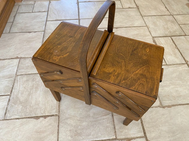 Vintage Mid Century Strommen Bruk Hamar Norway Accordion Style Sewing Box Wooden Ebay